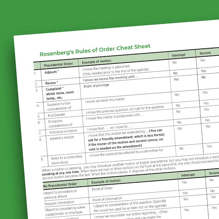 Rosenberg’s Rules of Order Cheat Sheet (PDF)